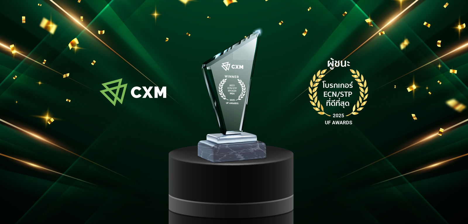เราทำสำเร็จอีกแล้ว! CXM ได้รับการยกย่องอย่างเป็นทางการให้เป็น โบรกเกอร์ ECN/STP ที่ดีที่สุด – MEA ในงาน Ultimate Fintech Middle East & Africa Awards 2025 อันทรงเกียรติ! การได้รับการยอมรับนี้ตอกย้ำตำแหน่งของเราในฐานะโบรกเกอร์ชั้นนำในตะวันออกกลางและแอฟริกา โดยสร้างมาตรฐานใหม่ในด้านความโปร่งใส ความเร็วในการดำเนินการ และเงื่อนไขการเทรดที่เหนือกว่า